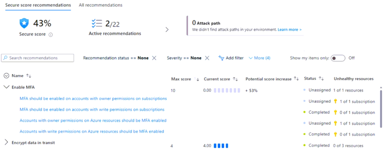 Sub1 has the secure score as shown in the Secure Score exhibit. (Click the Secure Score tab.)