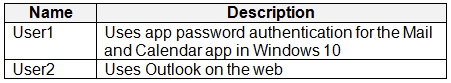 You need to ensure that the users cannot create app passwords. The solution must ensure that User1 can continue to use the Mail and Calendar app.