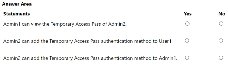 You add the Temporary Access Pass authentication method to Admin2.