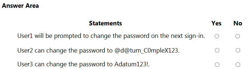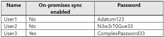 Your network contains an on-premises Active Directory domain named adatum.com that syncs to a Microsoft Entra tenant.