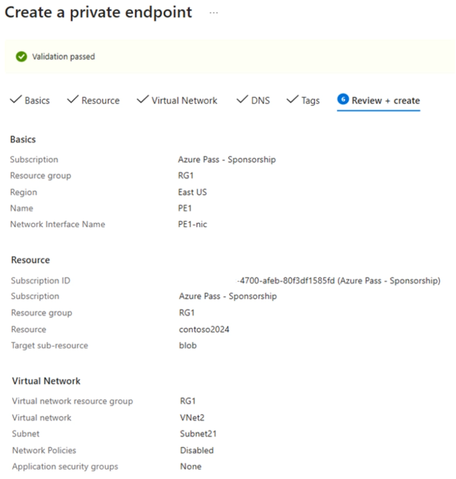 You create a private endpoint for contoso2024 as shown in the following exhibit.