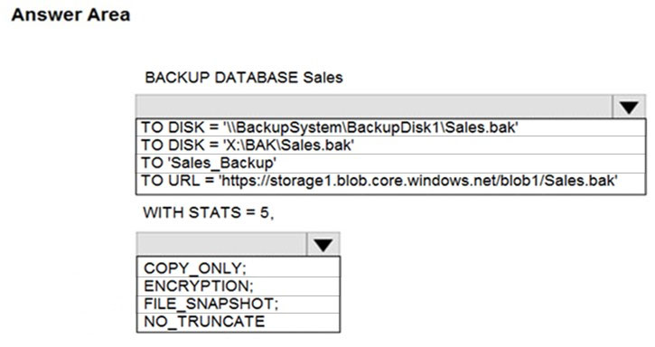 How should you complete the Transact-SQL statement? To answer, select the appropriate options in the answer area.