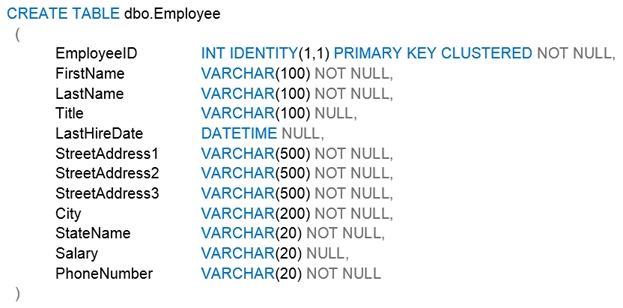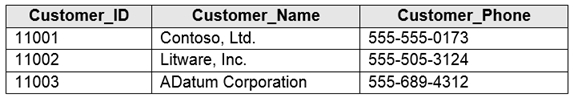 You have an Azure SQL database that contains a table named Customer. Customer has the columns shown in the following table.