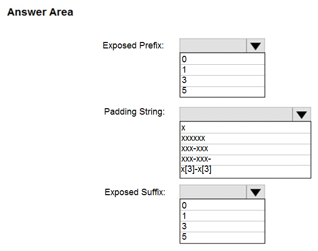 How should you configure the dynamic data mask? To answer, select the appropriate options in the answer area.