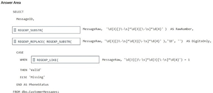 Log In / Sign UpYou have a SQL database in Microsoft Fabric that contains a nvarchar (max) column named MessageText. An ID is always contained within the first paragraph of MessageText.