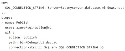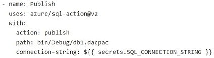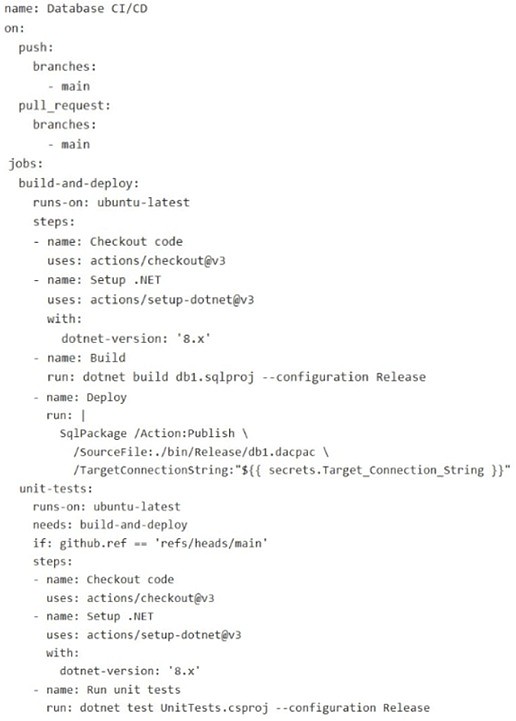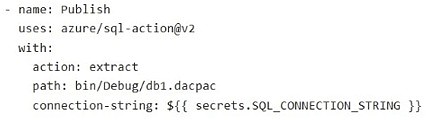 You have a database named db1. The schema is stored in a Git repository as an SDK-style SQL database project. The repository contains the following GitHub Action workflow.