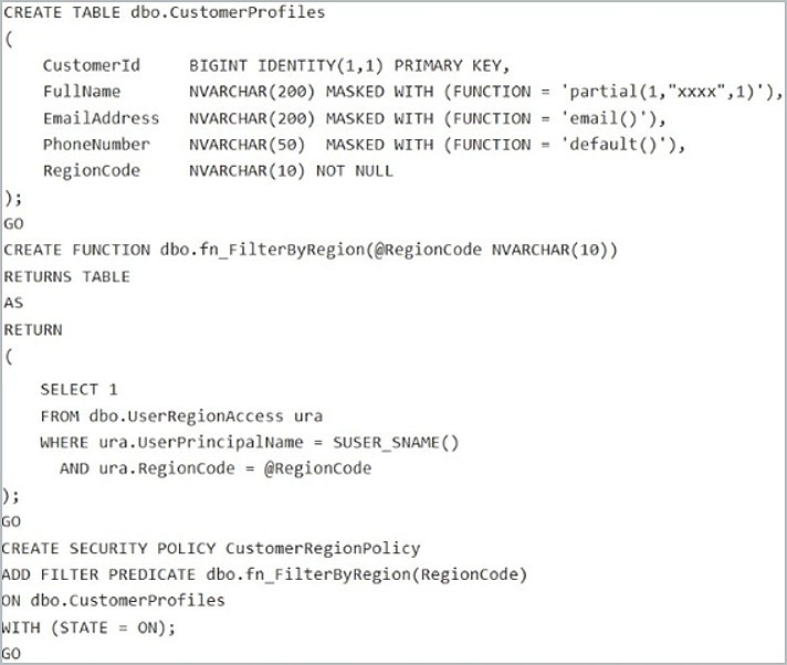 Contoso has an Azure subscription in North Europe that contains the corporate infrastructure. The current infrastructure contains a Microsoft SQL Server 2017 database. The database contains the following tables.