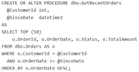 You have an Azure SQL database that supports a customer-facing API. The API calls a stored procedure named dbo.GetCustomerOrders thousands of times per hour.