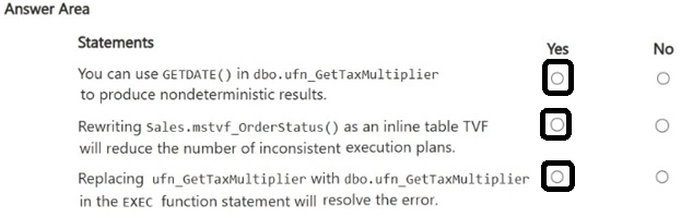 You write the following Transact-SQL code.