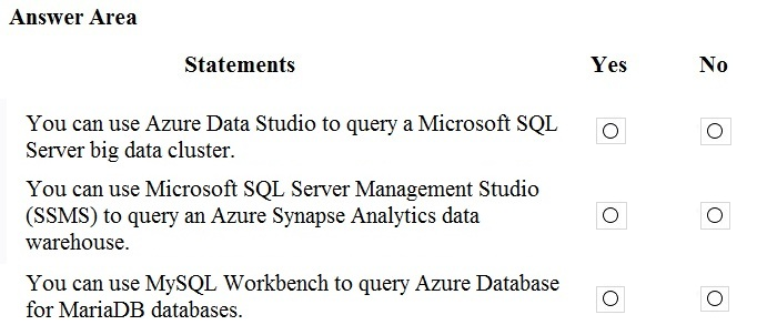 For each of the following statements, select Yes if the statement is true. Otherwise, select No.
