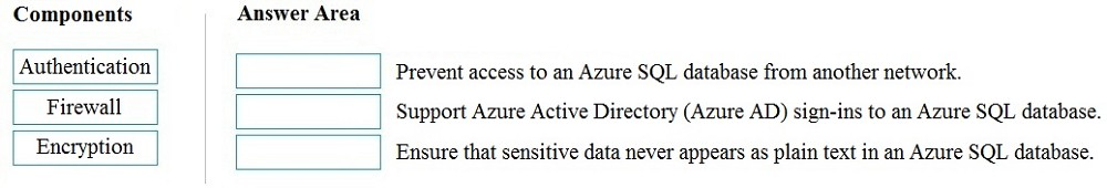 To answer, drag the appropriate component from the column on the left to its scenario on the right. Each component may be used once, more than once, or not at all.