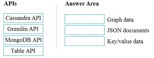 To answer, drag the appropriate API from the column on the left to its data structure on the right. Each API may be used once, more than once, or not at all.