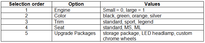 The custom motorcycles have a variety of selections that can be selected in the listed order by the end customer, including the following:
