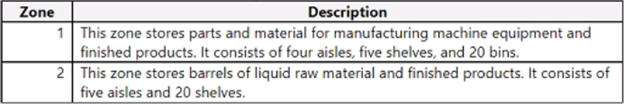The warehouse consists of the following zones: