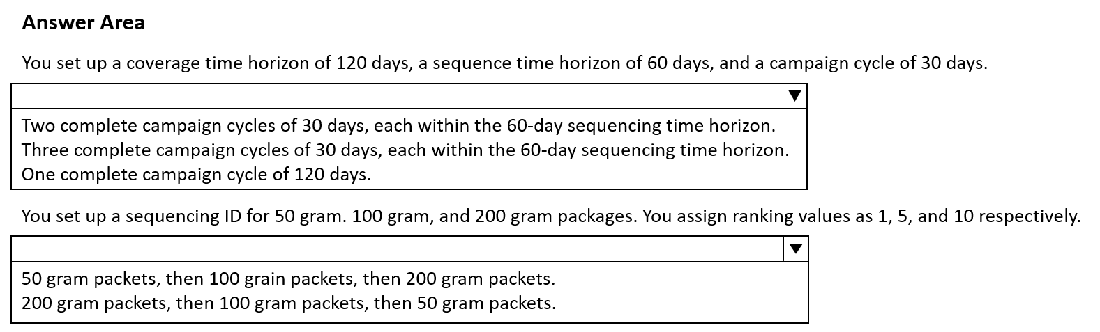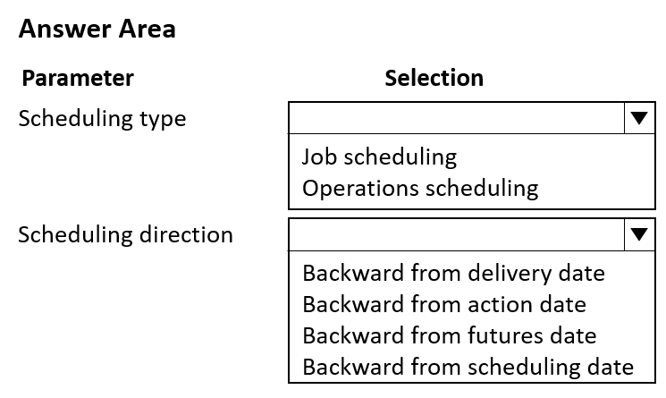 Which scheduling parameters should you use? To answer, select the appropriate option in the answer area.