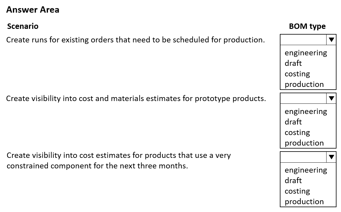A manufacturing company is implementing Dynamics 365 Supply Chain Management.