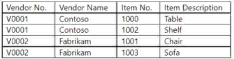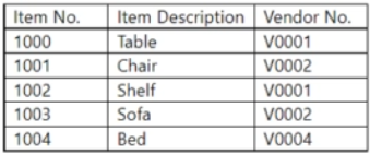 Vendor No.: stores the number of the vendor that sent the items; only vendors from the company must be included
