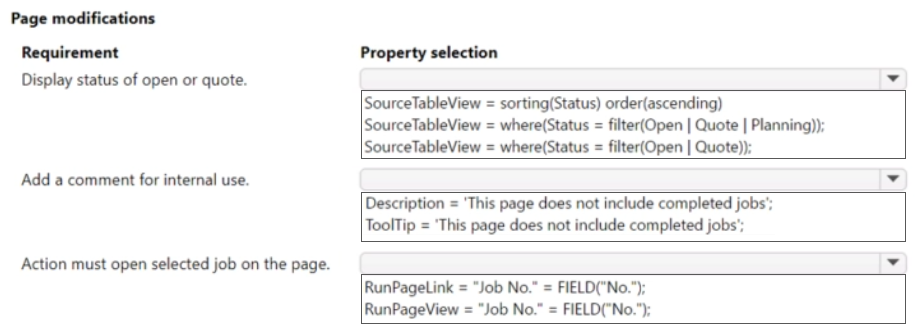 Which property selections should you use? To answer, select the appropriate options in the answer area.
