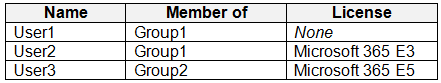 You assign Windows 10/11 Enterprise E5 licenses to Group1 and User2.