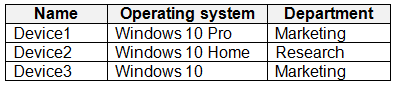 The devices enrolled in Intune are shown in the following table.