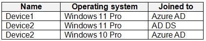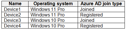 You have an Azure AD tenant that contains the devices shown in the following table.