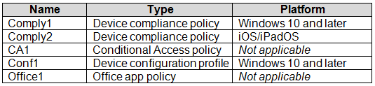 The device compliance policies in Intune are configured as shown in the following table.