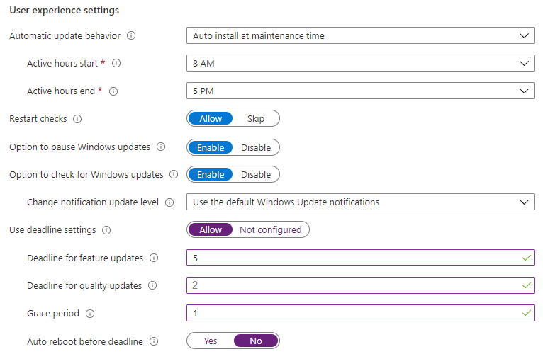 You create an update ring for Windows 10 and later and configure the User experience settings for the ring as shown in the following exhibit.
