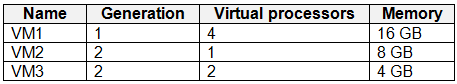 You have a Hyper-V host that contains the virtual machines shown in the following table.