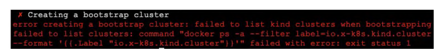 A Platform Engineer is trying to create a new NKP cluster and is getting the error shown in the exhibit.