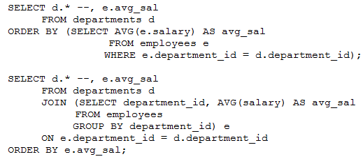 FOnly the first statement will execute successfully if you add E.AVG_SAL to the select list.