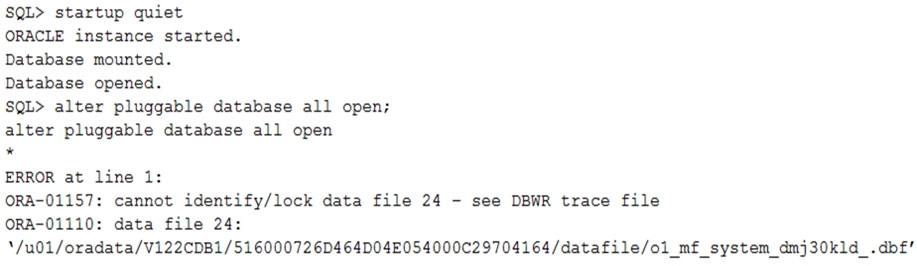 After a system crash, an instance restart and an attempted opening of the PDBs result in: