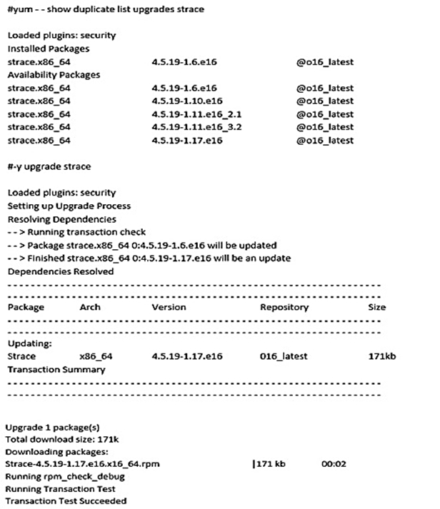 - D It fails with an error because there are multiple versions available to which Yum can downgrade the strace package.