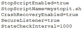 Below are portions of the nodemanager.properties file. Select the one that configures Node Manager as described.