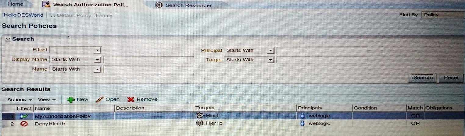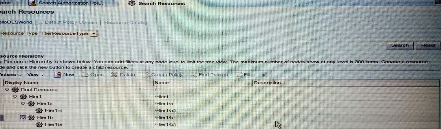 You have created a set of hierarchical resources in Oracle Entitlements Server and an associated set of authorization policies as shown in the Exhibits.