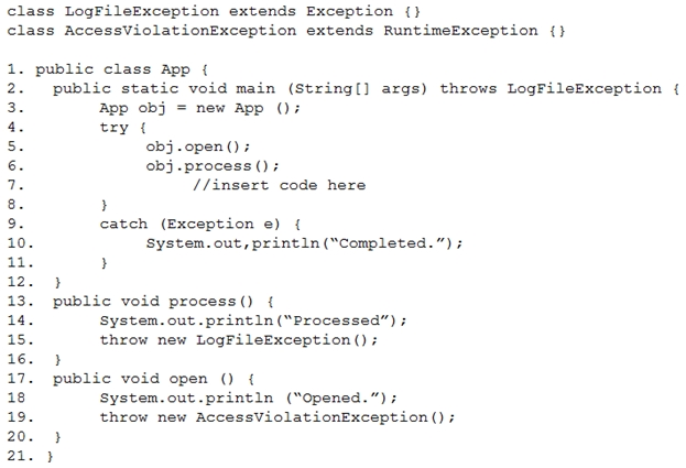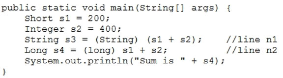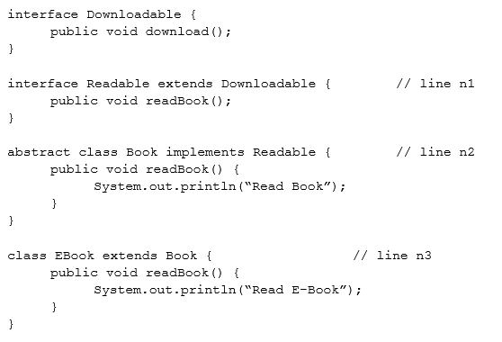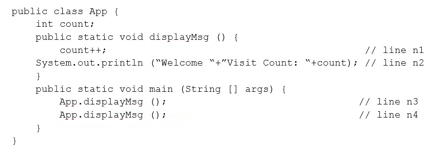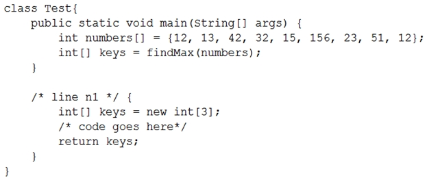 Which two code fragments should you use at line n1, independently, to achieve this requirement? (Choose two.)