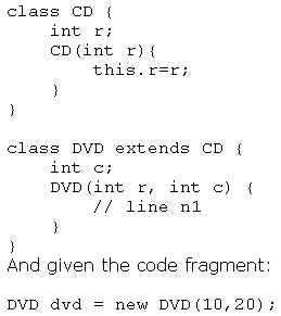 Which code fragment should you use at line n1 to instantiate the dvd object successfully?