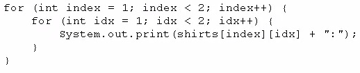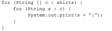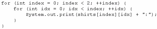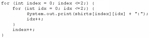 Which code fragment prints red:blue:small:medium?