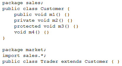 Which two methods can be overridden in the Trader class from the Customer class? (Choose two.)