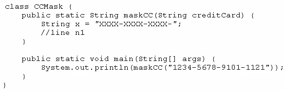 You must ensure that the maskcc method returns a string that hides all digits of the credit card number except the four last digits (and the hyphens that separate each group of four digits).