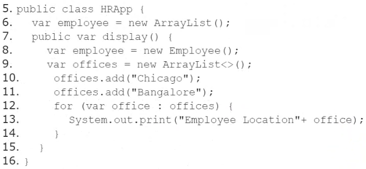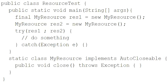Which two statements inserted independently on line 3 will make this code compile? (Choose two.)