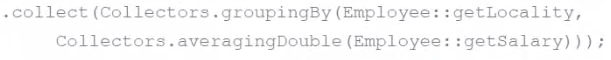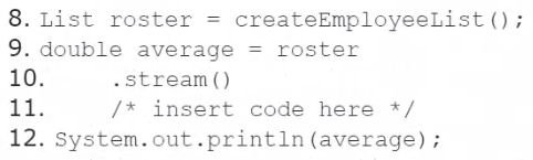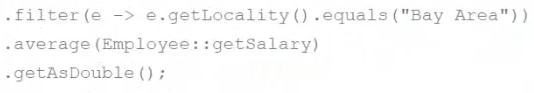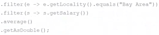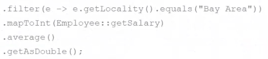 Which code fragment inserted on line 11 prints the average salary of all employees from the Bay Area?