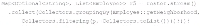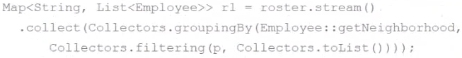 Which two Map objects group all employees with a salary greater than 30 by neighborhood? (Choose two.)