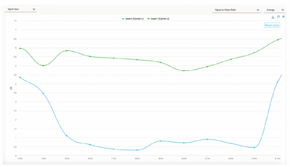 When troubleshooting an issue at a site that is running on two cellular links from two carriers, the operations team shared some evidence shown in the graph below: