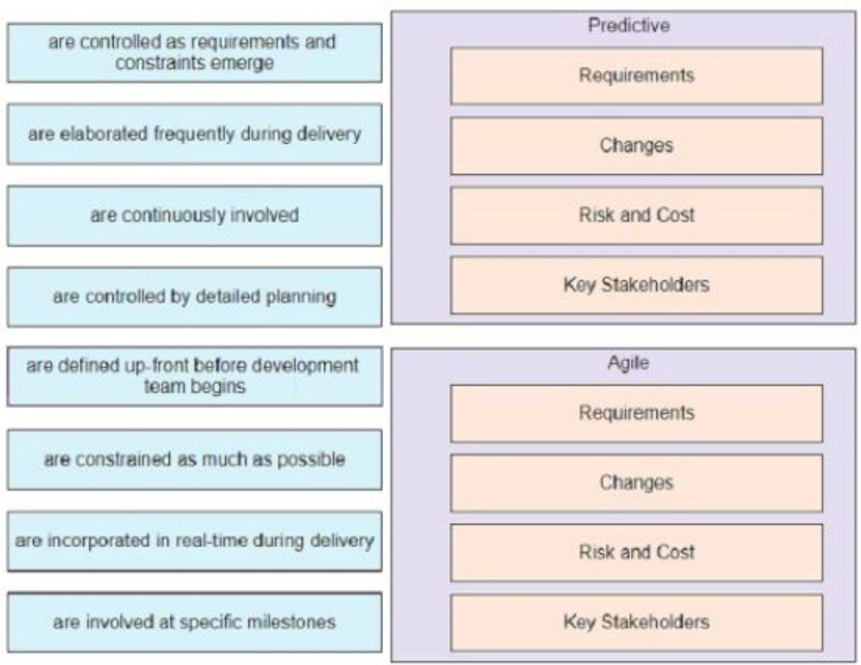 Drag the items on left side to the matching term within the correct project approach on the right side.
