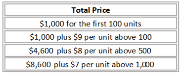 BCreate a Discount Schedule with Type = Range and Discount Unit = Price.