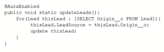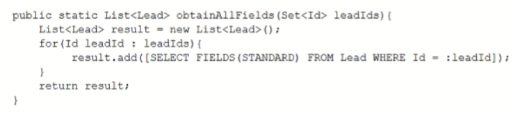 The following code snippet is executed by Lightning web component in an environment with more than 2,000 lead records: