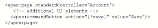 Consider the following code snippet for a Visualforce page that is launched using a Custom Button on the Account detail page layout.