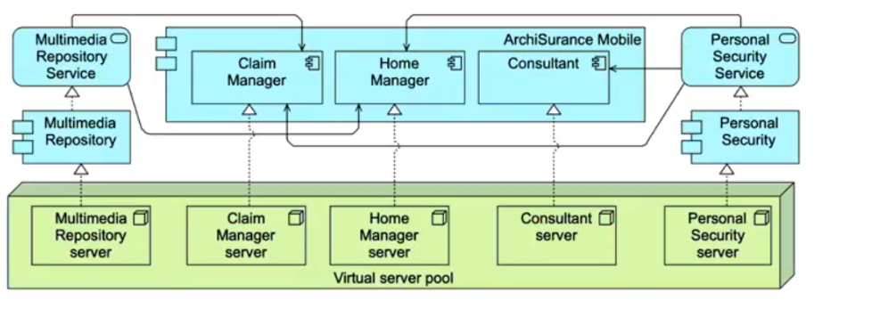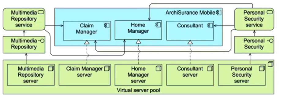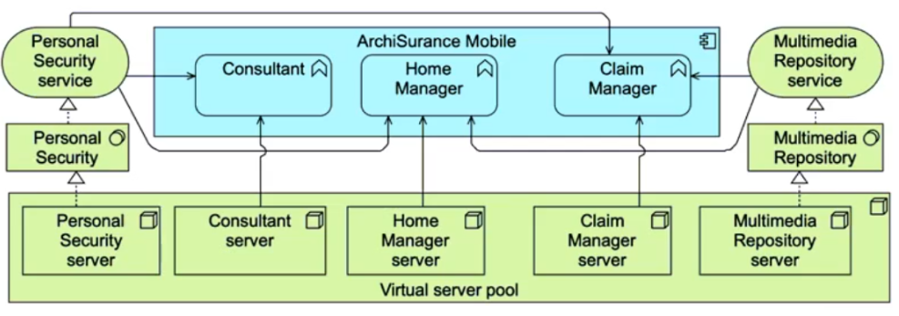 ArchiSurance Mobile also relies on a number of technology services. The Home Manager application uses a Multimedia Repository service to store and retrieve information about insured homes. The Claim Manager application also uses this service for claim information entered by customers. All three ArchiSurance Mobile applications use a Personal Security service to register and authenticate customers, and to manage their profiles.