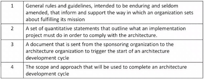 C1 Statement of Architecture Work - 2 Architecture Principles - 3 Architecture Requirements Specification - 4 Request for Architecture Work