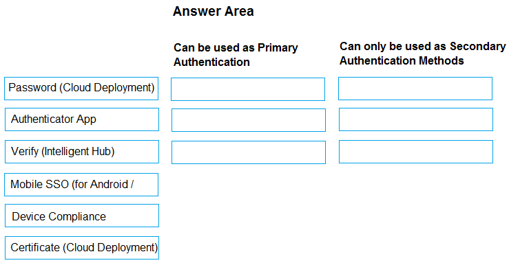 Drag and drop the authentication methods on the left into the correct classification on the right.